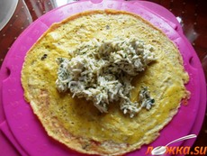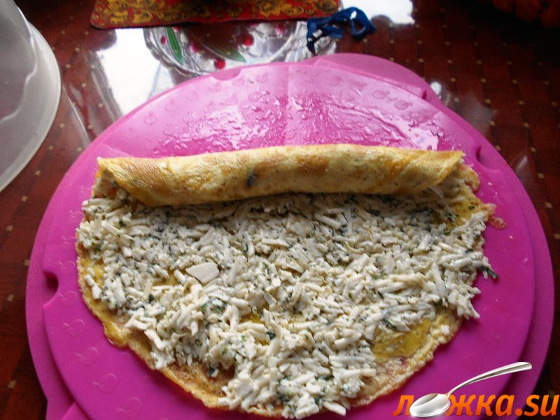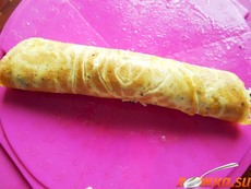 Ровненько распределить ее по всей лепешке и аккуратно сворачивать в рулет.