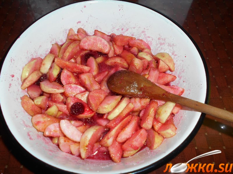 Дать постоять, пока яблоки не утонут в сиропе. Помешивать.