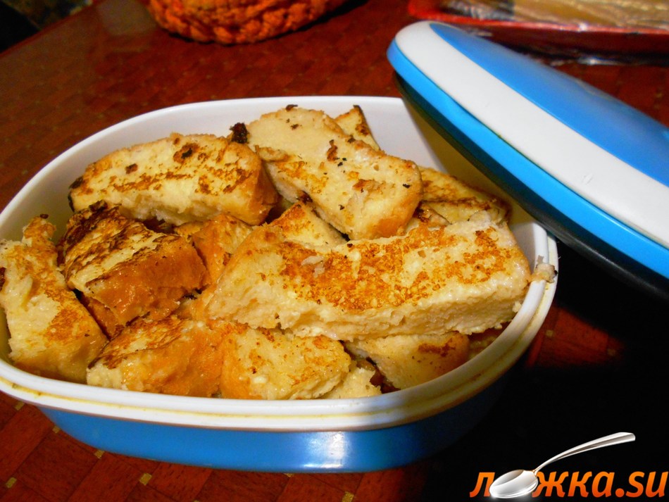 В яично молочную массу можно добавить сахар - получим сладкие гренки. Можно посыпать их зеленью, чесноком и пр. Фантазируйте.