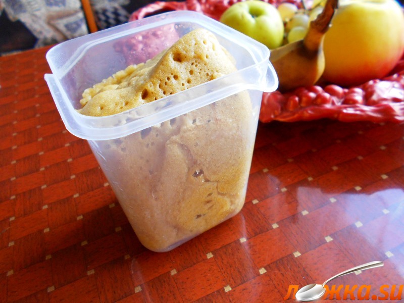 Формочку для микроволновой печи, слегка смазать маслом и влить туда массу. Установить в печь на 2 минуты на высокую мощность.