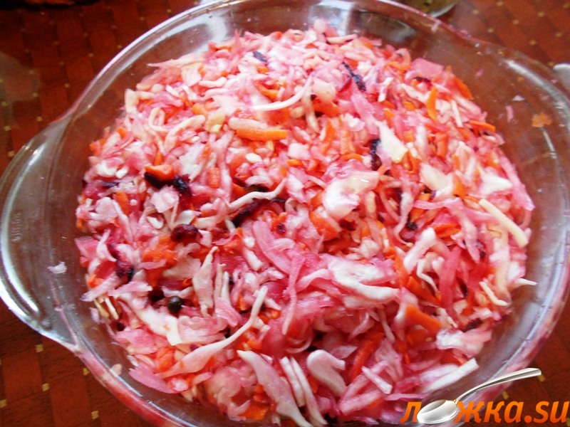 Капусту нашинковать. Свеклу порезать небольшими кусочками.
