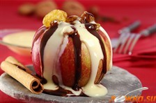Пеките 45-50 минут до мягкости яблок; проверяйте палочкой. Подавайте горячими, политыми мороженым и шоколадным сиропом.