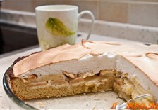 Вынимаем немного недопеченный пирог и укладываем белковую пену поверх яблок равномерно, разравниваем и снова ставим в горячую духовку. Когда через несколько минут белки схватятся светло-коричневой корочкой — пирог готов!!!