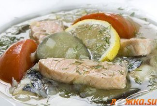 Перед подачей на стол разлейте по подогретым тарелкам, оформите ломтиками лимона и посыпьте рубленой зеленью укропа.