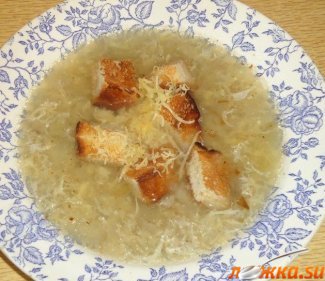 Подавать супчик нужно с гренками или сухариками, которые сверху посыпьте тертым твердым сыром.