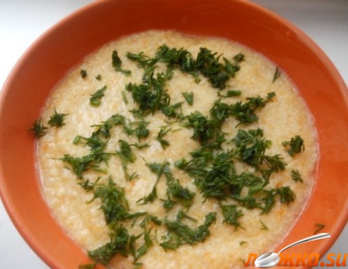 При помощи блендера измельчить суп-пюре морковный с рисом до пюреобразной консистенции.
