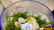 Сало измельчаем в блендере. К измельченному салу добавляем укроп, чеснок и измельчаем все до однородной массы.