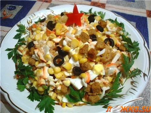 | Название: | Салат с кукурузой, колбасками и крабовыми палочками |