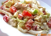 | Название: | Салат с кальмарами, курицей, яблоком и пекинской капустой |